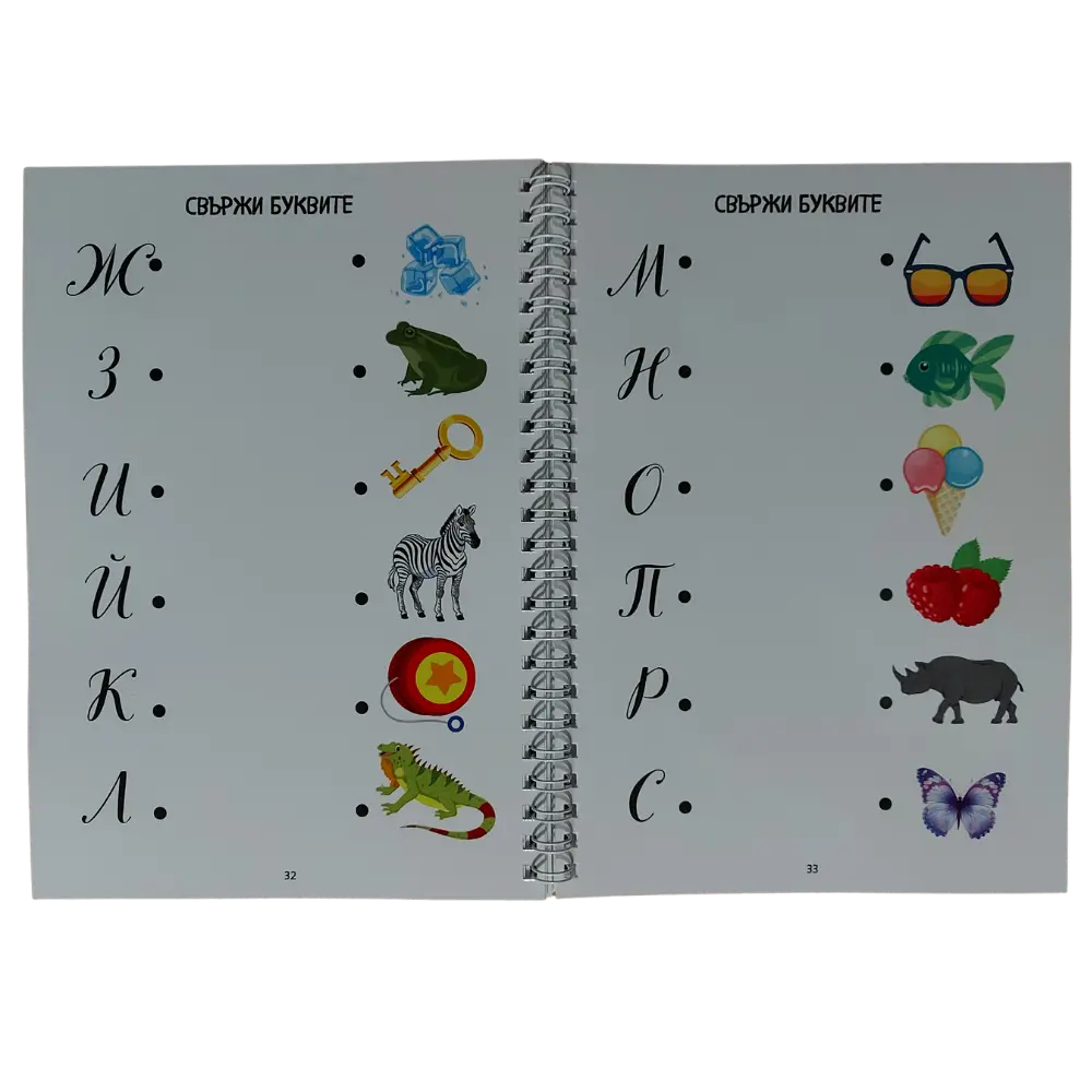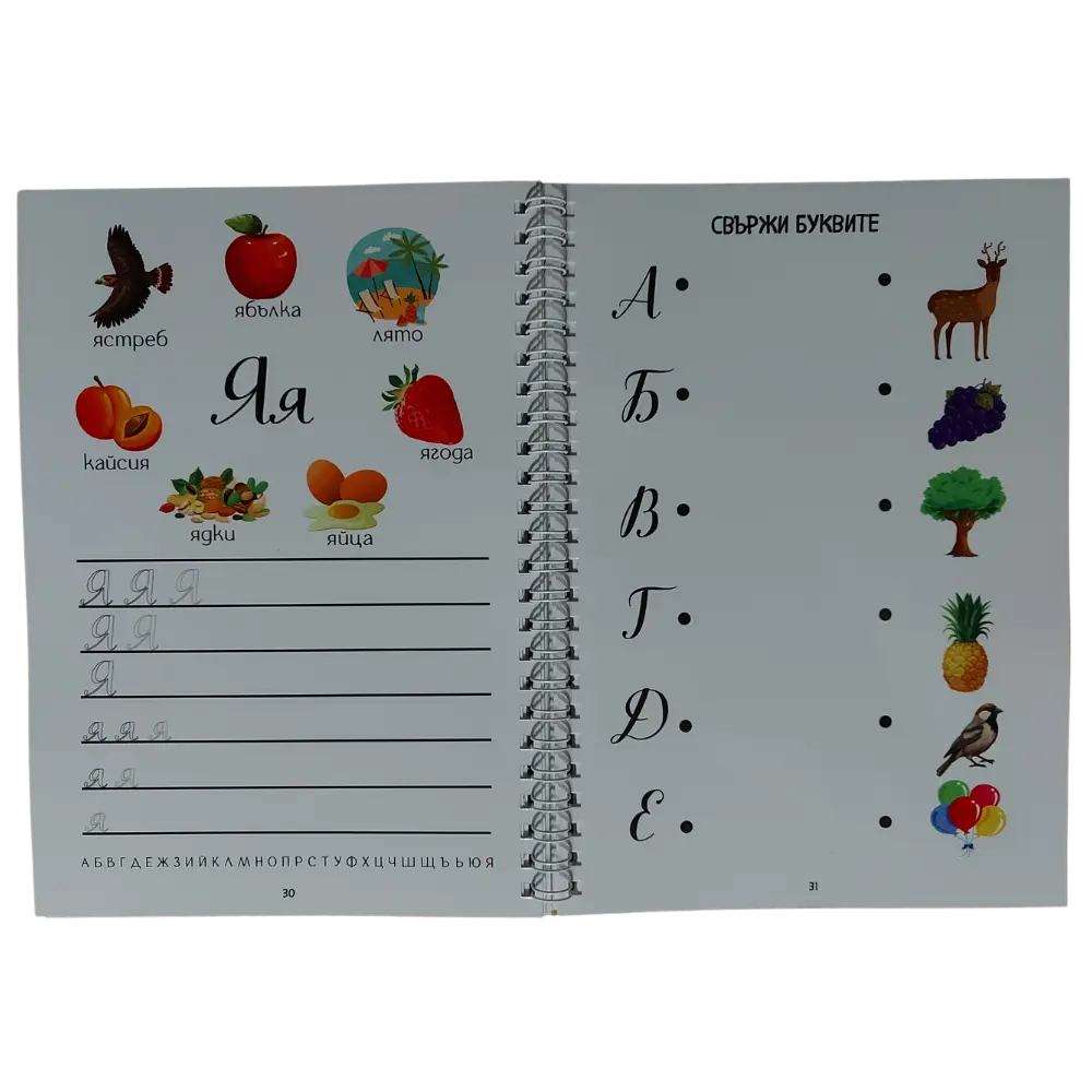 Специализирани проучвания показват, че свързването на букви с картинки помага на детето да запомни по-лесно азбуката и да развие любопитство към ученето.